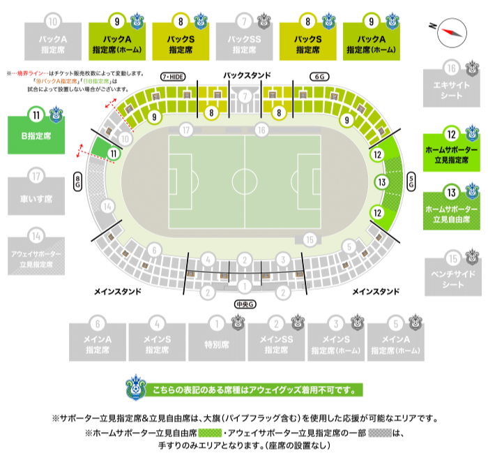 ・応援ルール: アウェイチームのユニフォーム着用・応援はできません。