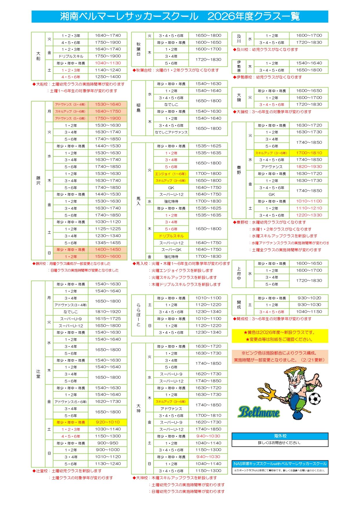 アドヴァンスクラスはコーチからの推薦、練習参加を経て合否の決定をいたします。現在ベーシッククラスにお通いでアドヴァンスクラスをご希望の方は、4月以降に希望申請いただく流れとなります。新年度からのクラスは、<現在の持ち上がりクラスまたはご希望の会場・曜日のベーシッククラス>をお選びください。アドヴァンスクラスの詳細は近日中に改めてご案内いたします。