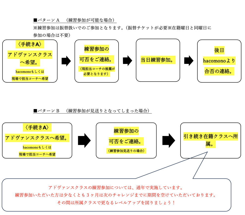 アドヴァンスクラスへのお申し込みから練習参加までの流れ