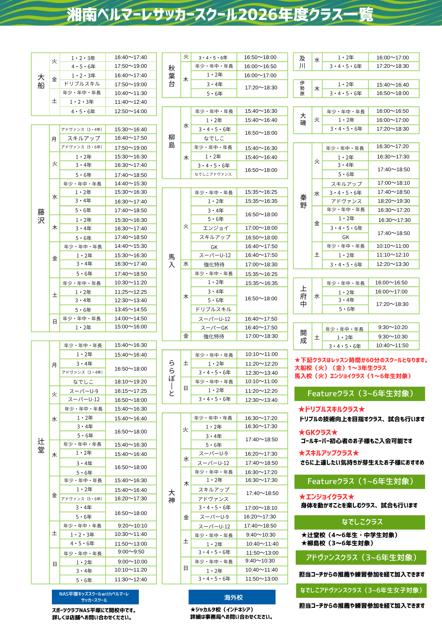 湘南ベルマーレサッカースクールでは2026年度、7つのクラスでアドヴァンスクラスを開催いたします。